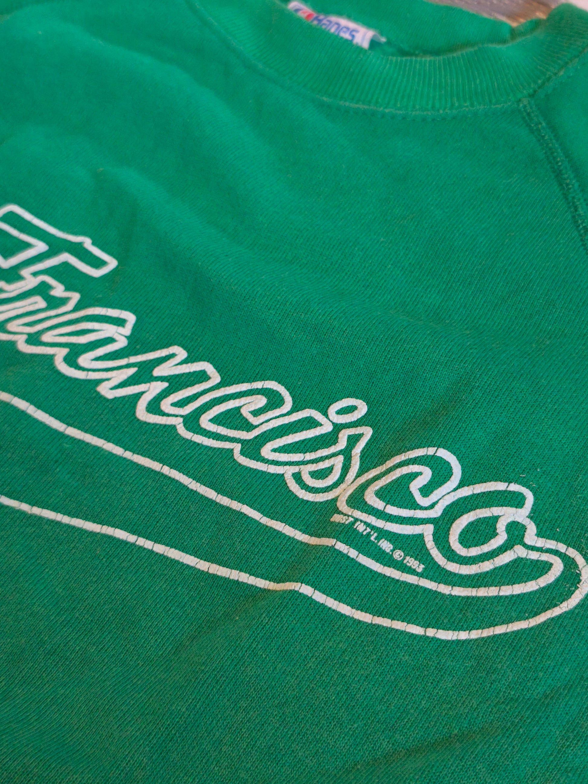 Klassisches 80s/90s Design in kräftigem Grün mit „San Francisco“ Schriftzug auf der Brust – clean, zeitlos und super tragbar.