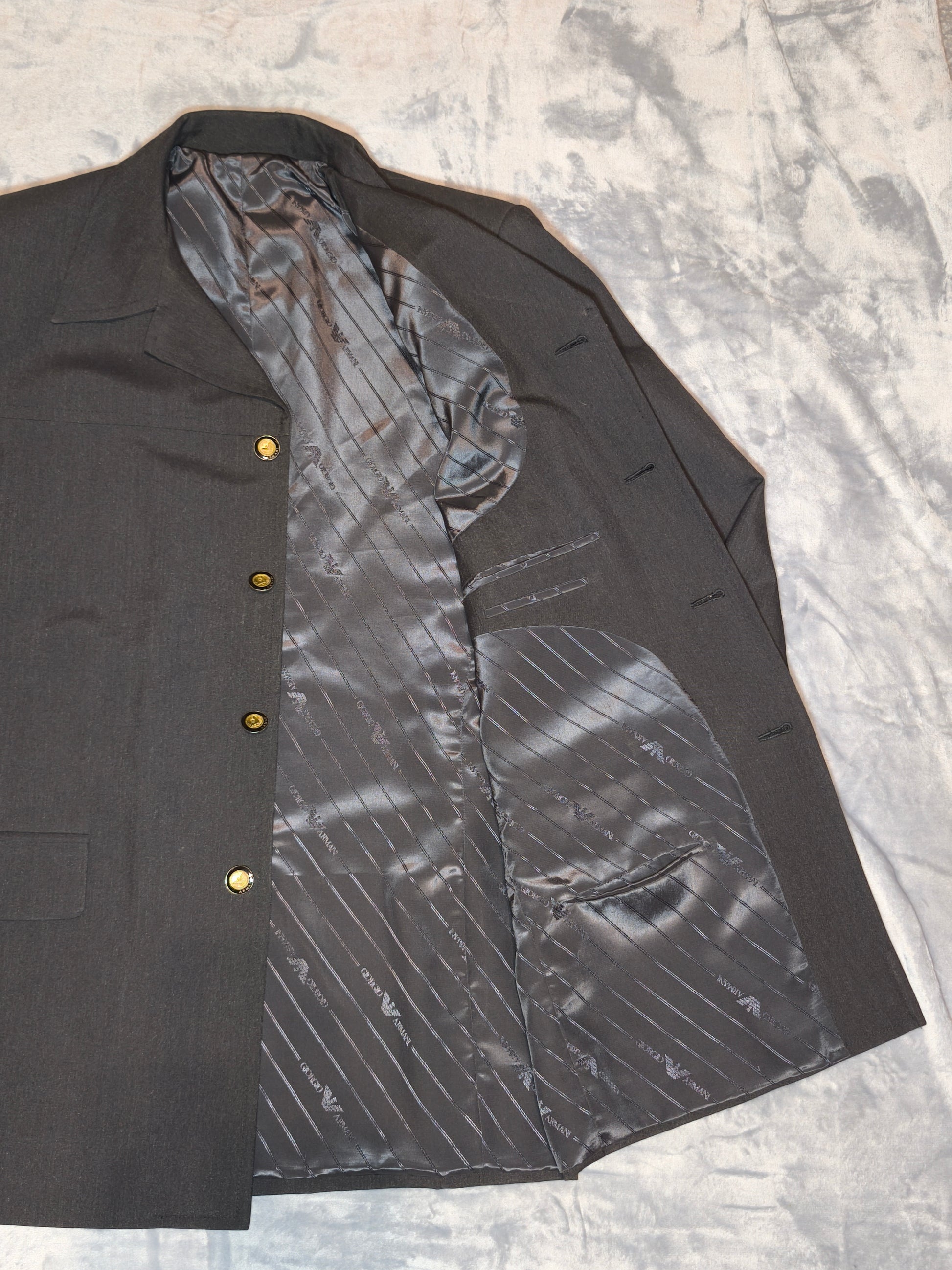 ⚠️ Hinweis: Das Markenetikett ist nicht mehr vorhanden. Aufgrund der originalen Knöpfe und des typischen Armani-Innenfutters handelt es sich jedoch um ein originales Armani-Jacket (Vintage).
